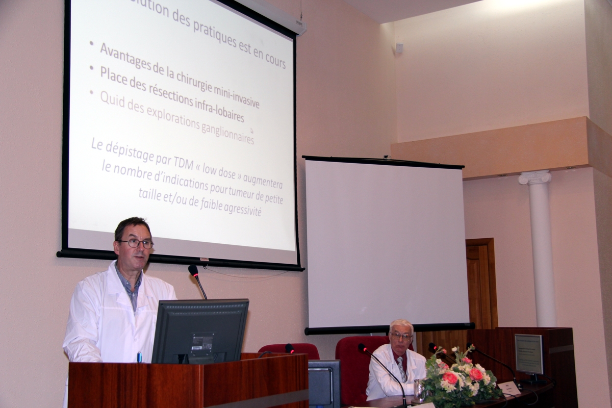 26 января 2015 г. в УНИИФ состоялся круглый стол «Торакальная хирургия: реалии и перспективы», в рамках которого с лекцией, посвященной миниинвазивным оперативным вмешательствам в торакальной хирургии, выступил руководитель клиники торакальной хирургии Страсбургского Университета (Франция) профессор Жильбер Массар.