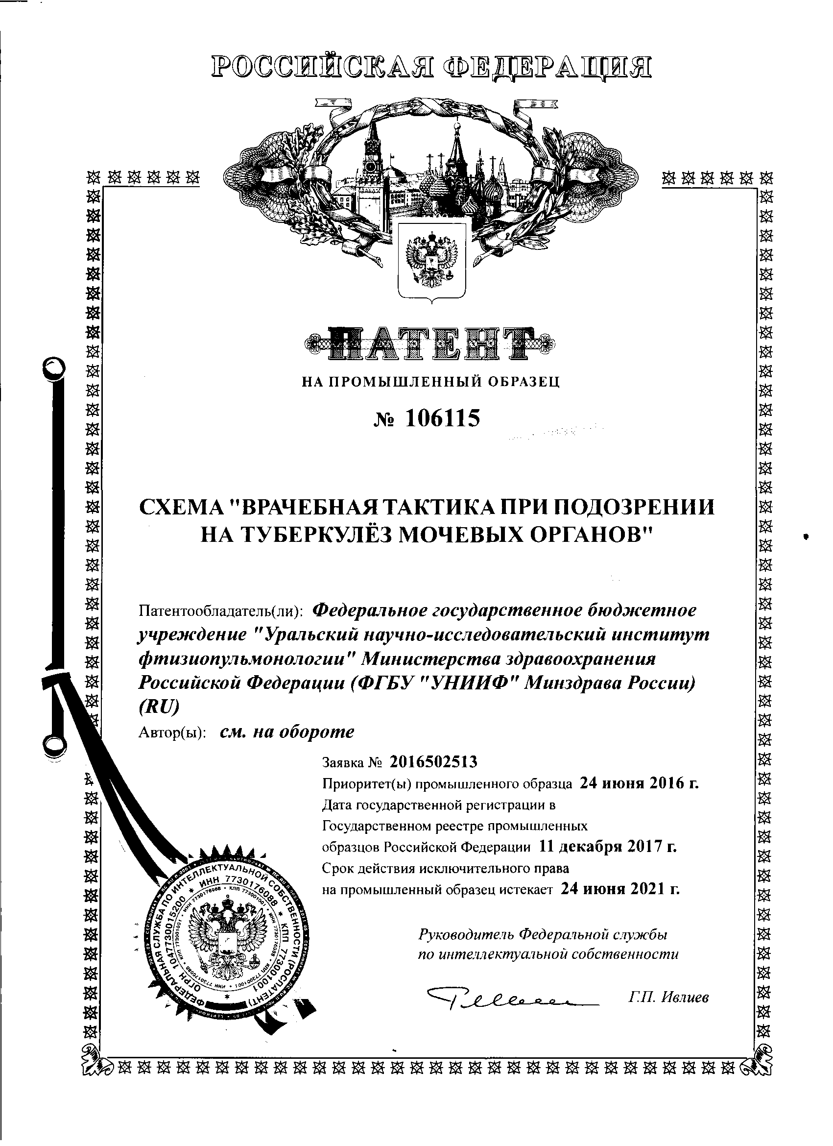 Поздравляем с получением патента на изобретение «Способ хирургического лечения бронхиального свища после операции по поводу туберкулеза легких» Баженова Александра Викторовича и Мотуса Игоря Яковлевича с соавторами.