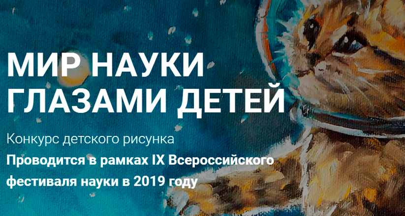 Уважаемые сотрудники! В рамках IX Всероссийского Фестиваля науки проводится конкурс детского рисунка «Мир науки глазами детей». Цель конкурса – стимулирование детского творчества, продвижение среди детей идеи ценности научного знания, расширение их кругозора и знаний. Приглашаем принять участие Ваших детей и внуков в возрасте 5-17 лет!