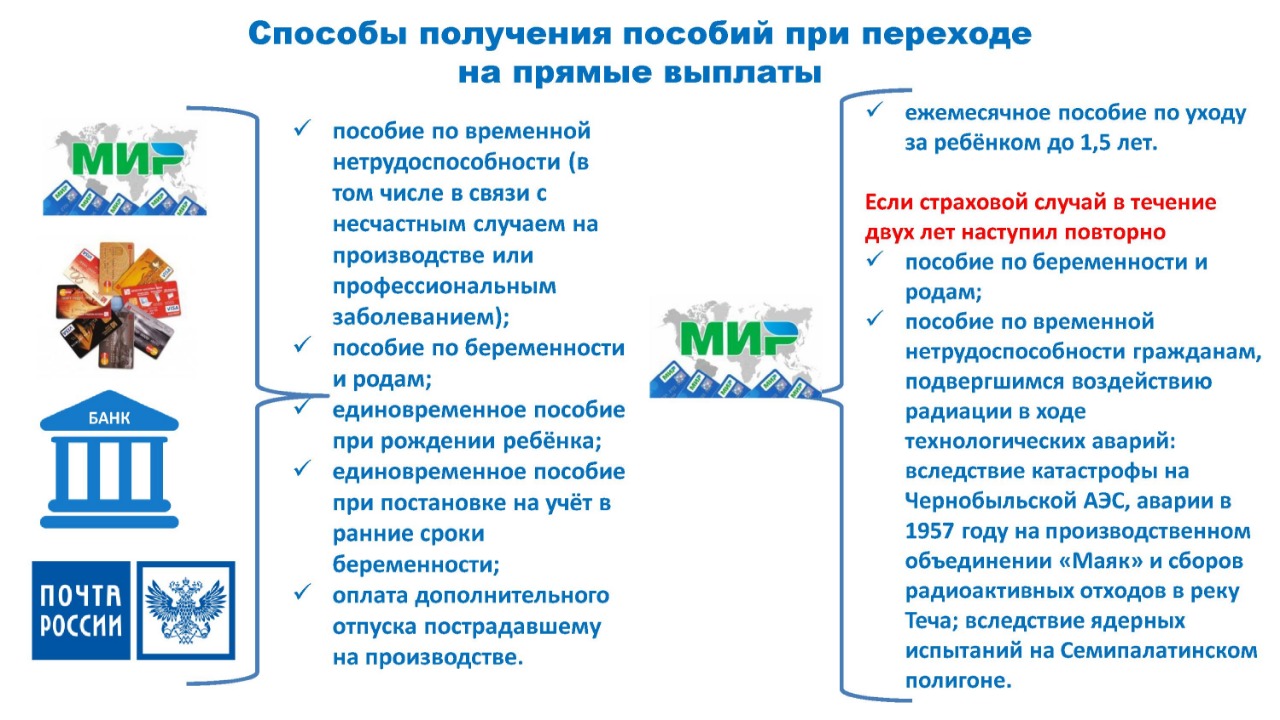 Получать пособия работающие граждане с начала следующего года будут напрямую через Фонд на карту «Мир», на банковский счёт или почтовым переводом – в зависимости от предпочтений самого работника.